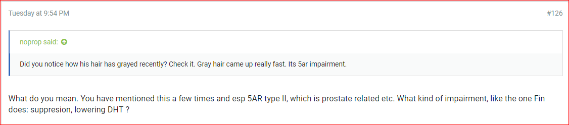 Are you challenging the variant of disregulated 5AR due to Fin or some else and thus affecting Estrogens and related to copper metabolism and that way to hair color or what is it @noprop ?